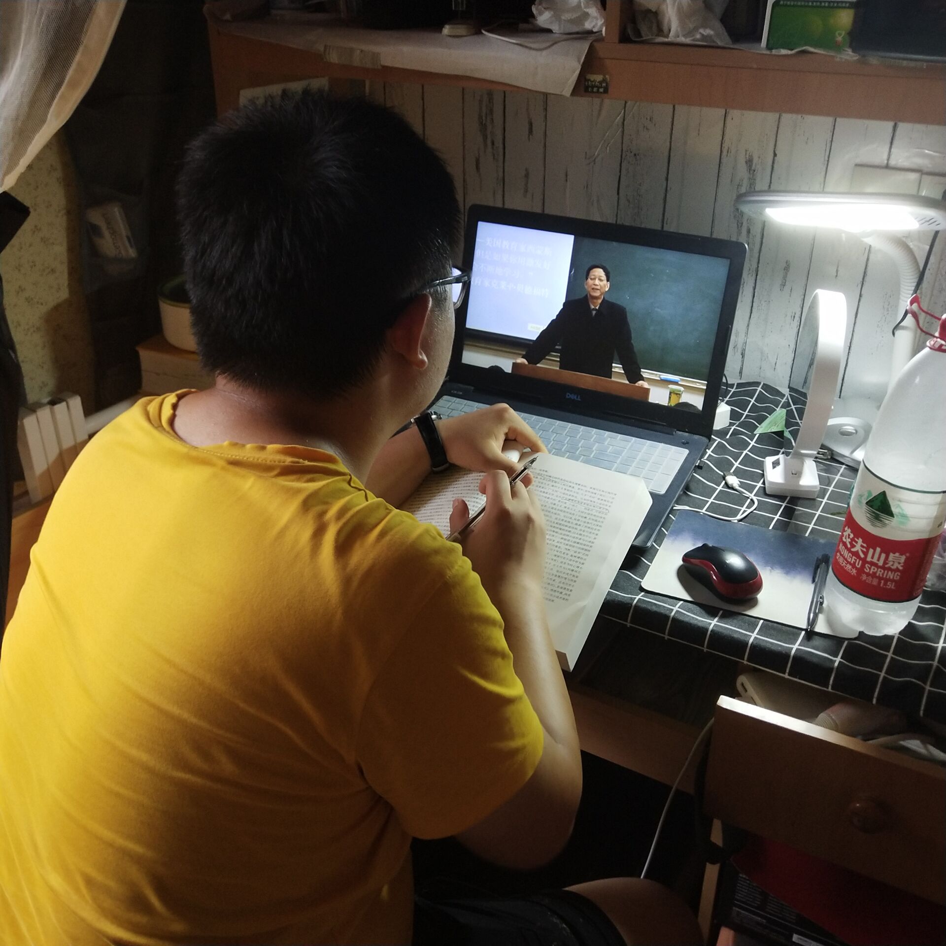 看着开学时间的不断推延,刘启鹏知道,他老早定下的学习任务和工作目标大多都已无法实现。但是柳暗,往往会孕生着花明。他在网上搜集了大量各高校关于督促学生线上学习的资料,每天都在督促班上的同学们打卡学习。当明月高悬,华灯隐没,而刘启鹏还在和同系的其他班长交流本班同学的学习生活情况。工作结束,他强忍着疲惫,开始整理一天的学习心得。