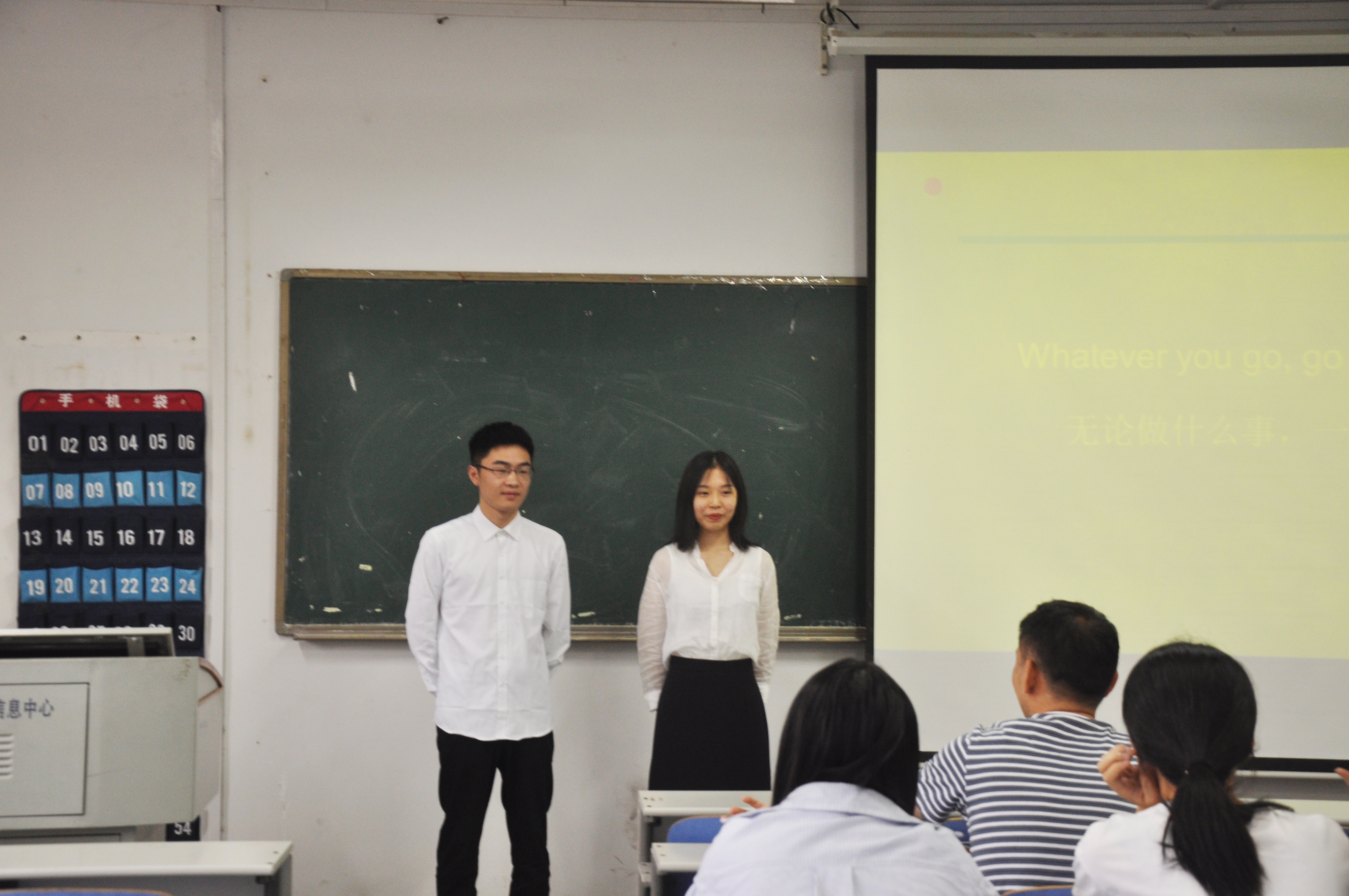 面试形式为两两搭档演讲,共有竞选演讲、老师提问、老师总结三个环节。面试伊始,由主持人依次介绍竞选者上台演讲。选手们进行不超过5分钟的自由表述,分别从对助班的理解,竞选助班的优势,未来工作规划三大方面进行阐述。面试过程中,选手们沉着专注、自信流畅地阐述了自己对竞选助班的设想,并结合幻灯片充分展示自身的竞选优势。面对老师的提问,现场选手沉着冷静、大方谈辩,同时就如何应对助班工作中的突发事件等问题进行了全面地回答。
