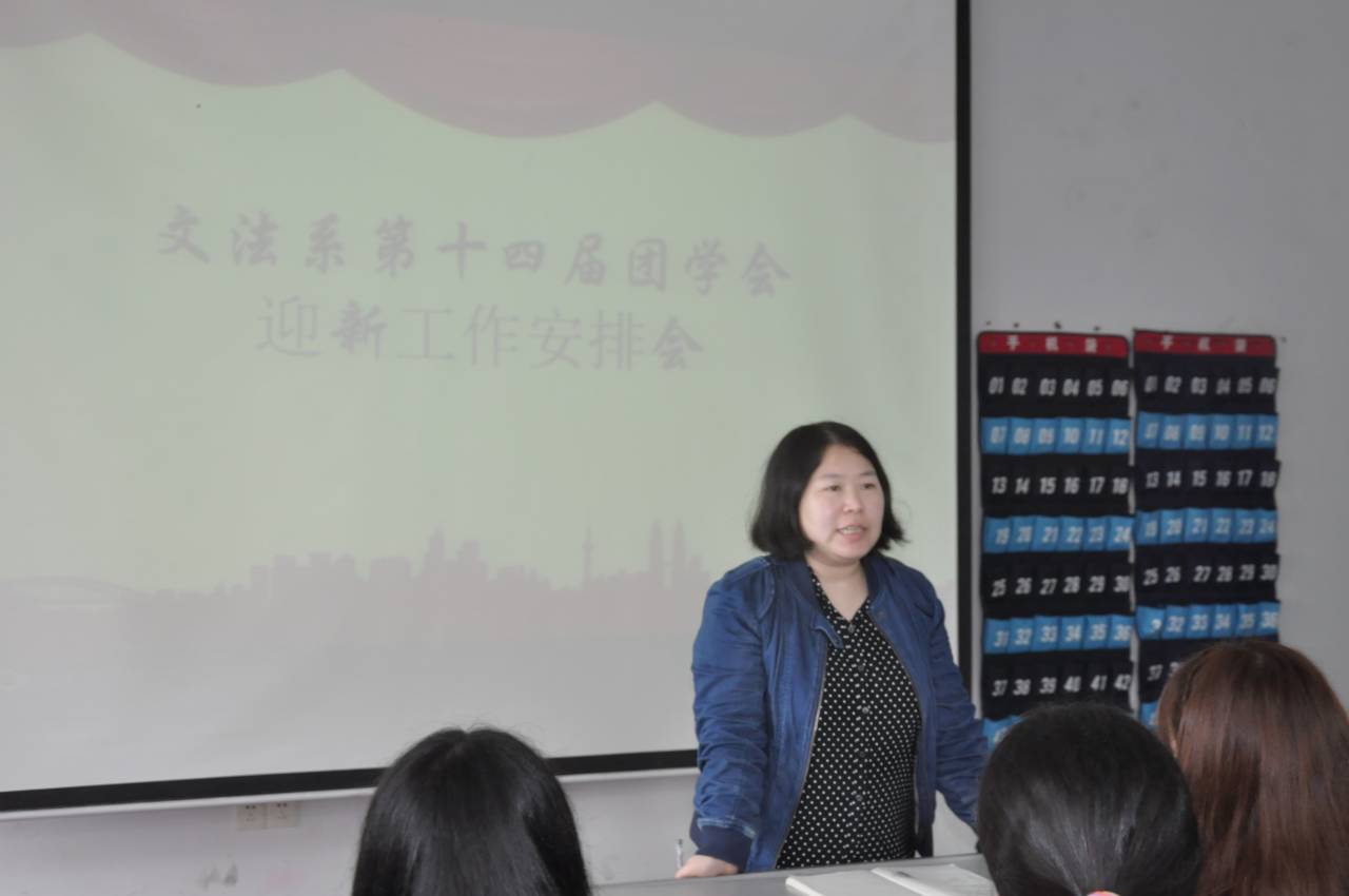 9月21日中午,文法系在二号楼2101教室召开文法系第十四届团学会迎新工作安排会。系党总支书记付亚子、副书记兼2020级辅导员贺青、团总支书记欧阳群力、全体团学干部以及2020级助班与会。