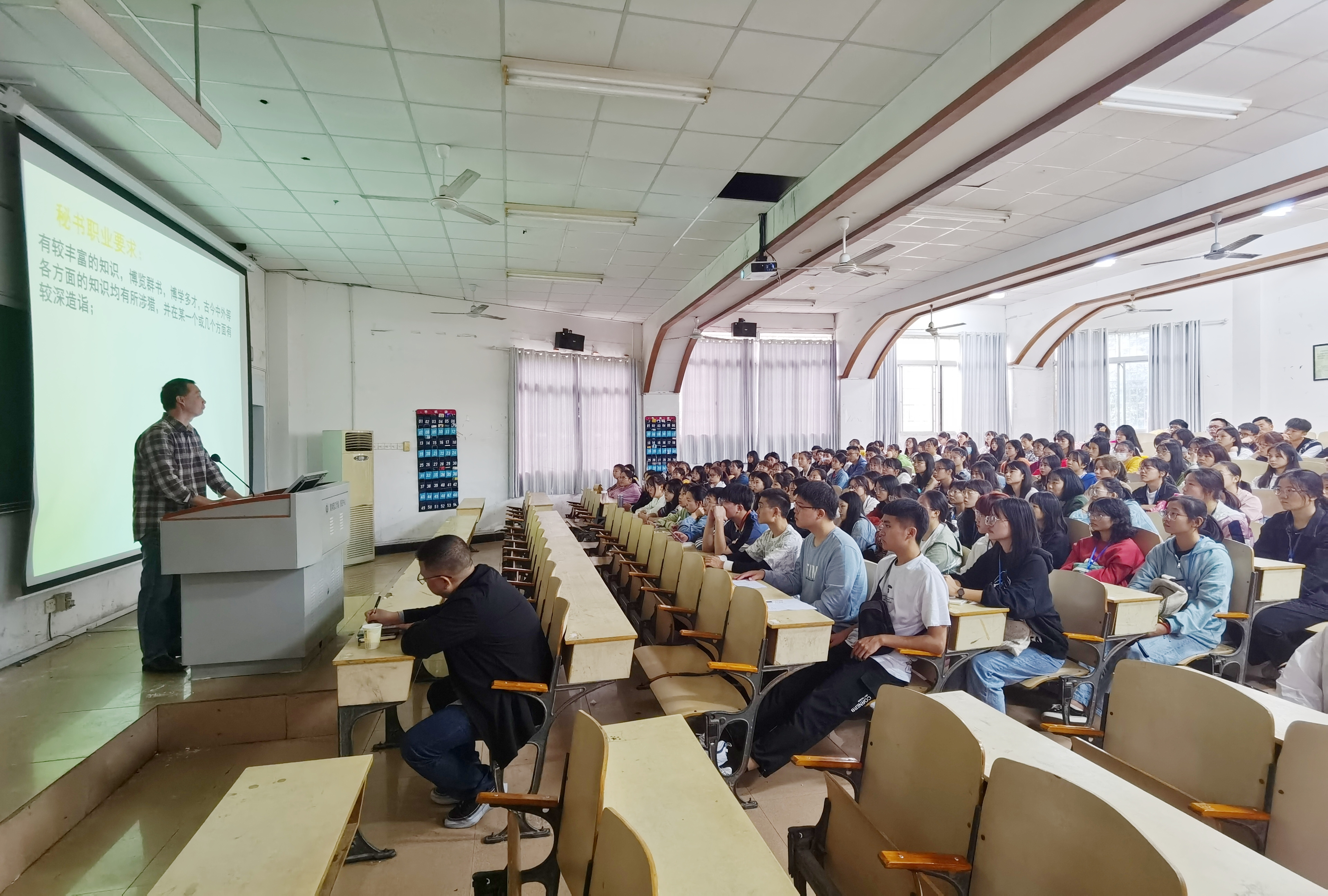 活动伊始,贺波彬围绕汉语言文学这一专业向新生作了详细的培养方案介绍。他表示,我系汉语言文学专业是偏文秘方向,注重专业理论知识与社会实践能力。同时,他期望同学们能博览群书,博学多才,夯实专业基础,多多涉猎古今中外等各方面的知识,从而进一步掌握专业发展动态。最后,付亚子对讲座内容作简要总结讲话。他指出,汉语言文学专业的学习重在平时的积累,希望同学们在大学生活中要做好清晰的规划,多多阅读一些名著,参加学校组织的活动,在实践中锻炼自己的能力,提升自身专业素养。
