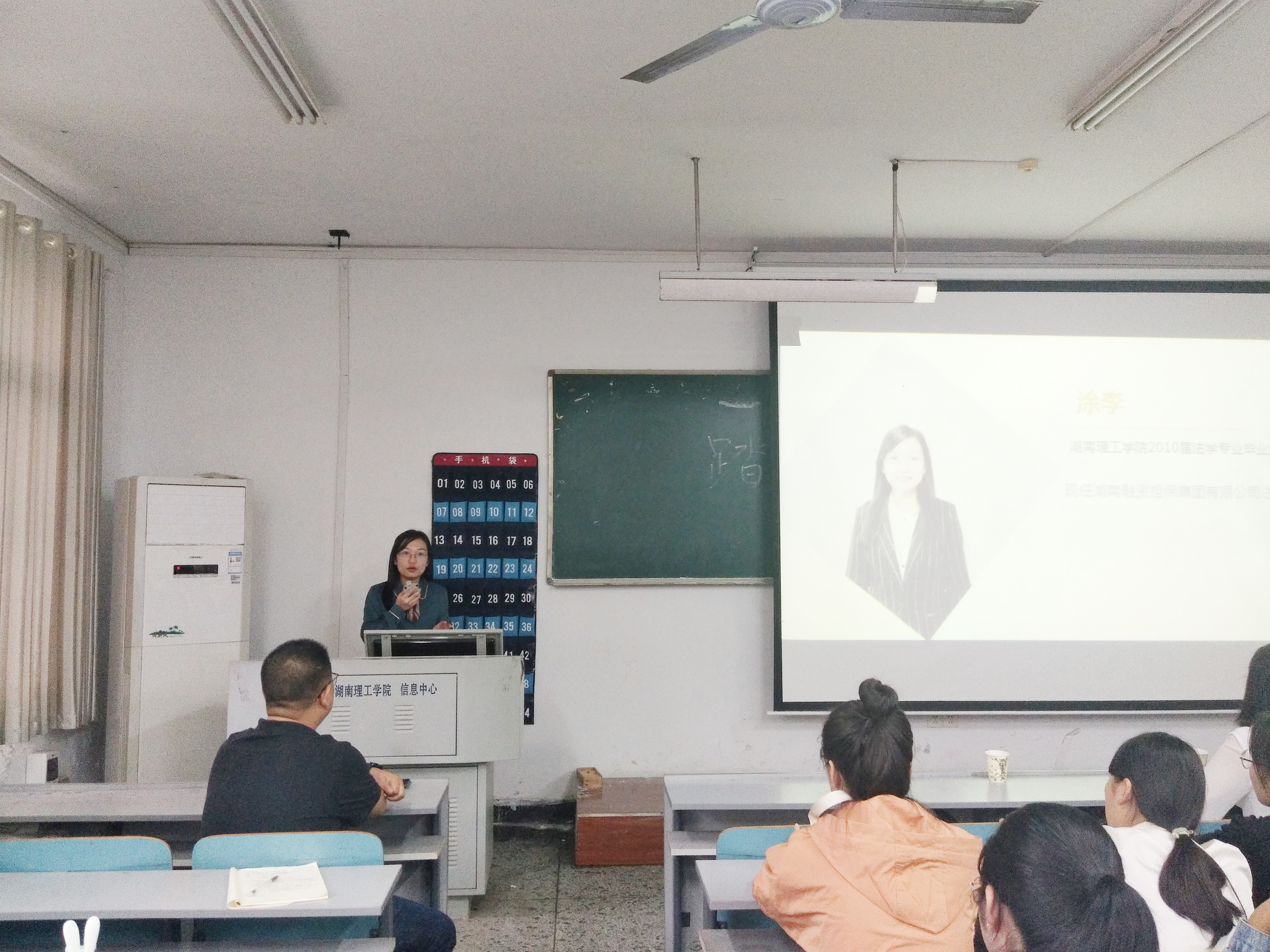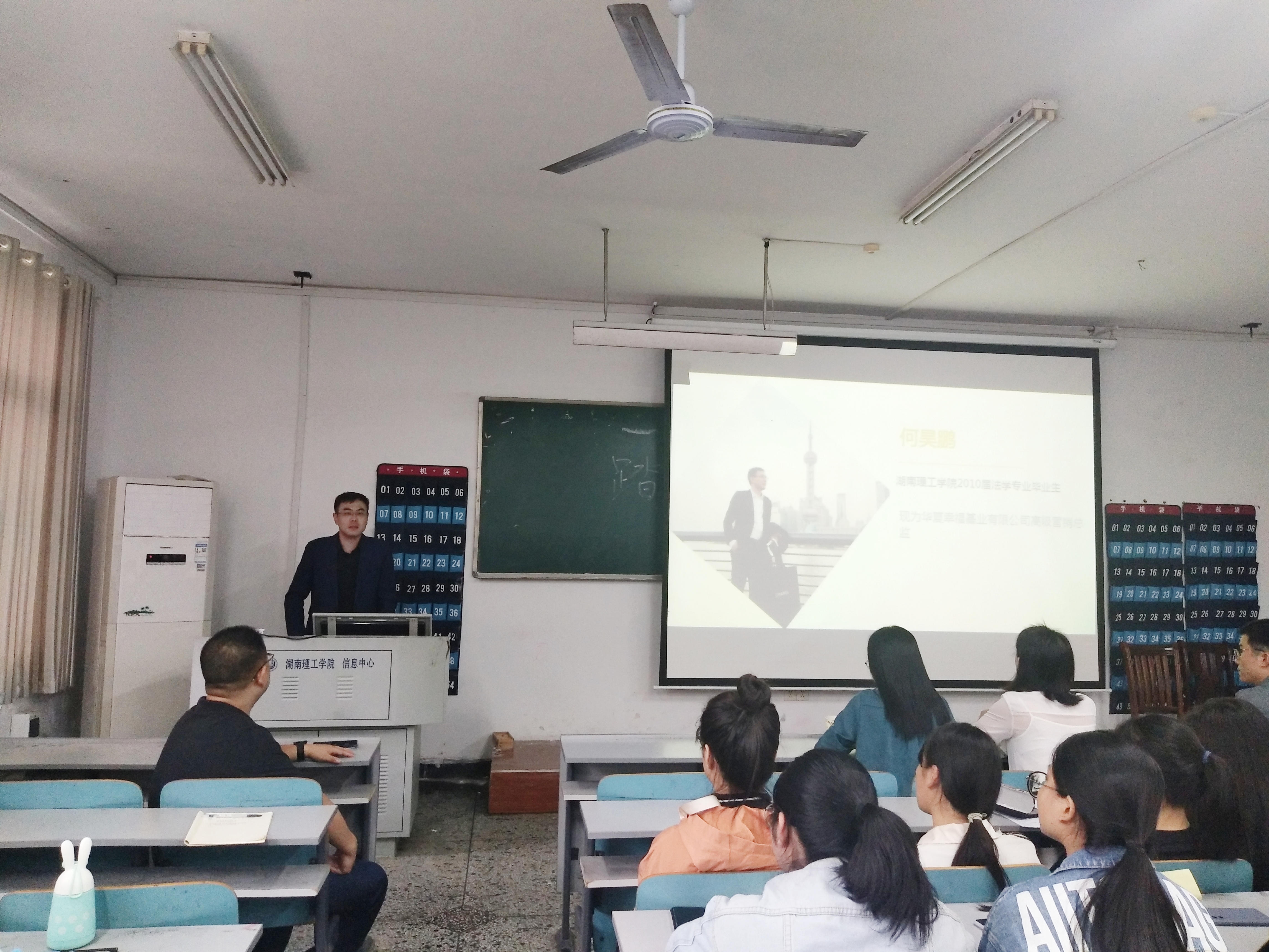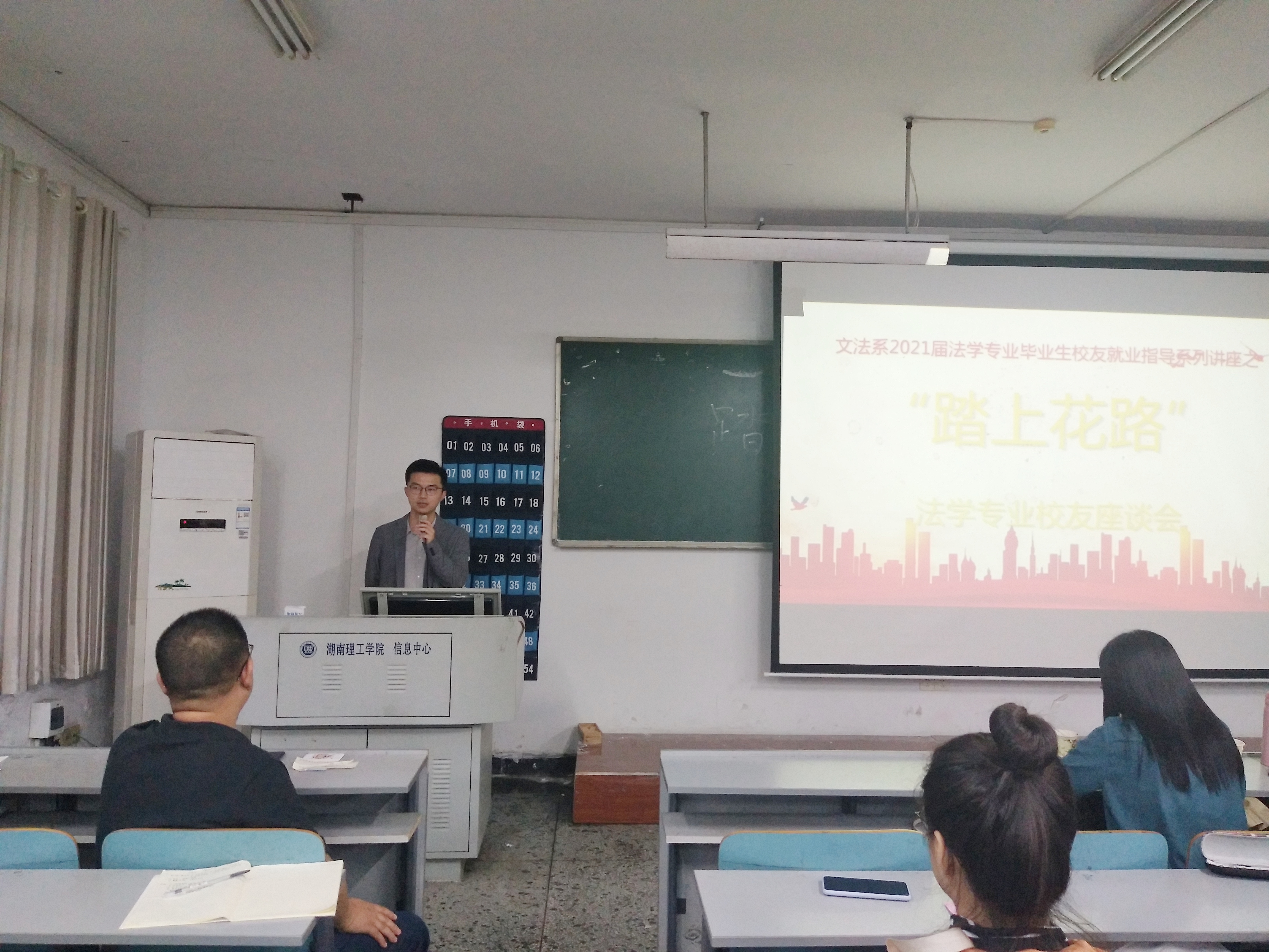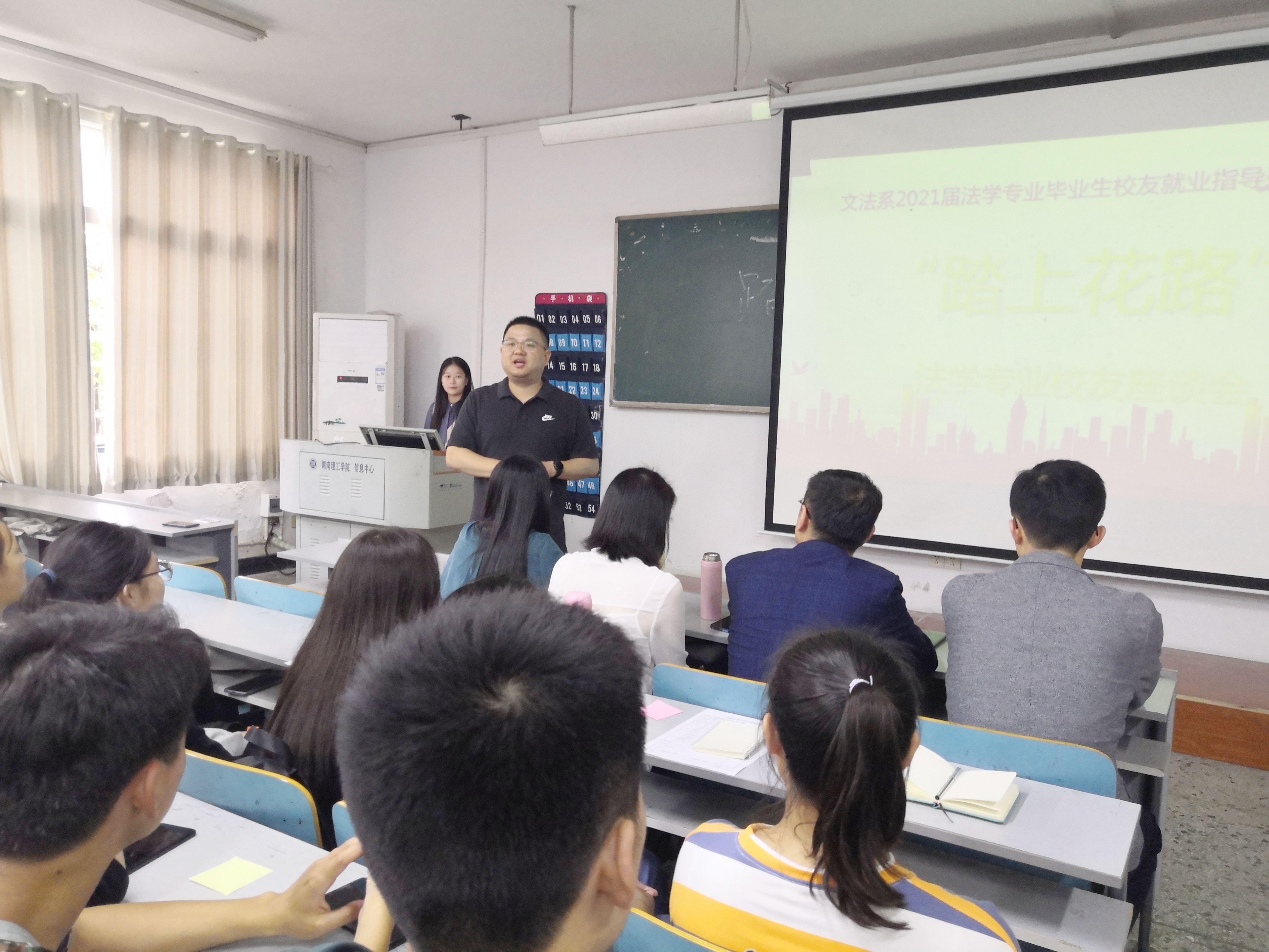 10月2日下午,文法系在二号文学楼2101教室召开法学专业校友座谈会。系党总支书记付亚子,湖南理工学院2010届法学毕业生何昊鹏、涂李、史娟、胡正,以及80多名法学专业生参加了此次座谈会。