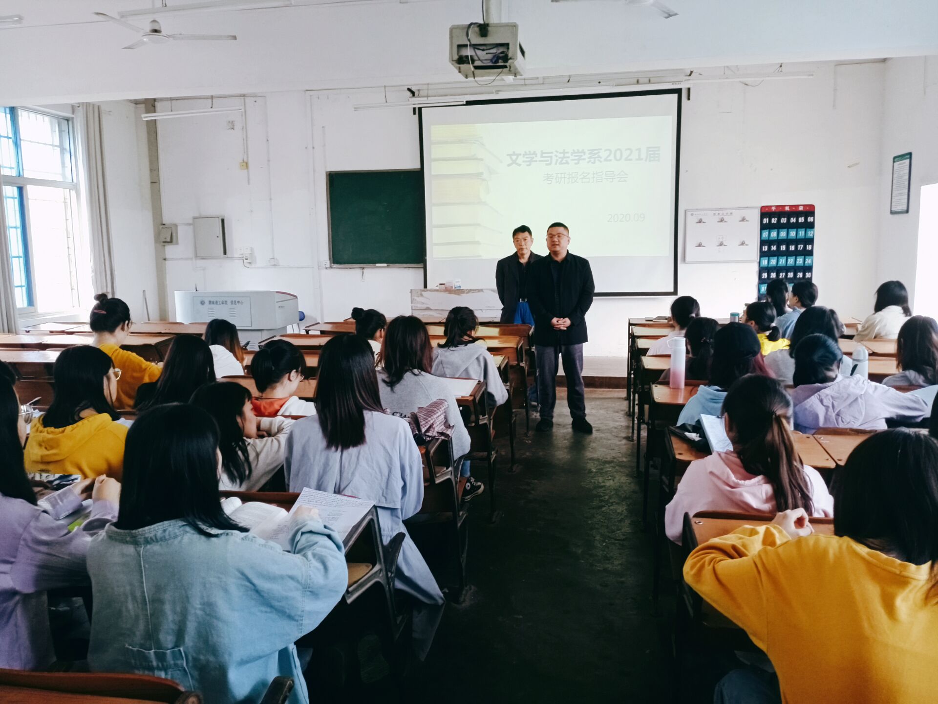 9月28日,文法系在1号外语楼1315教室召开2021届考研报告指导会。文法系主任赖换初、党总支书记付亚子、16级优秀考研学生代表兰菲以及2021届考研意向学生。会议由付亚子主持。