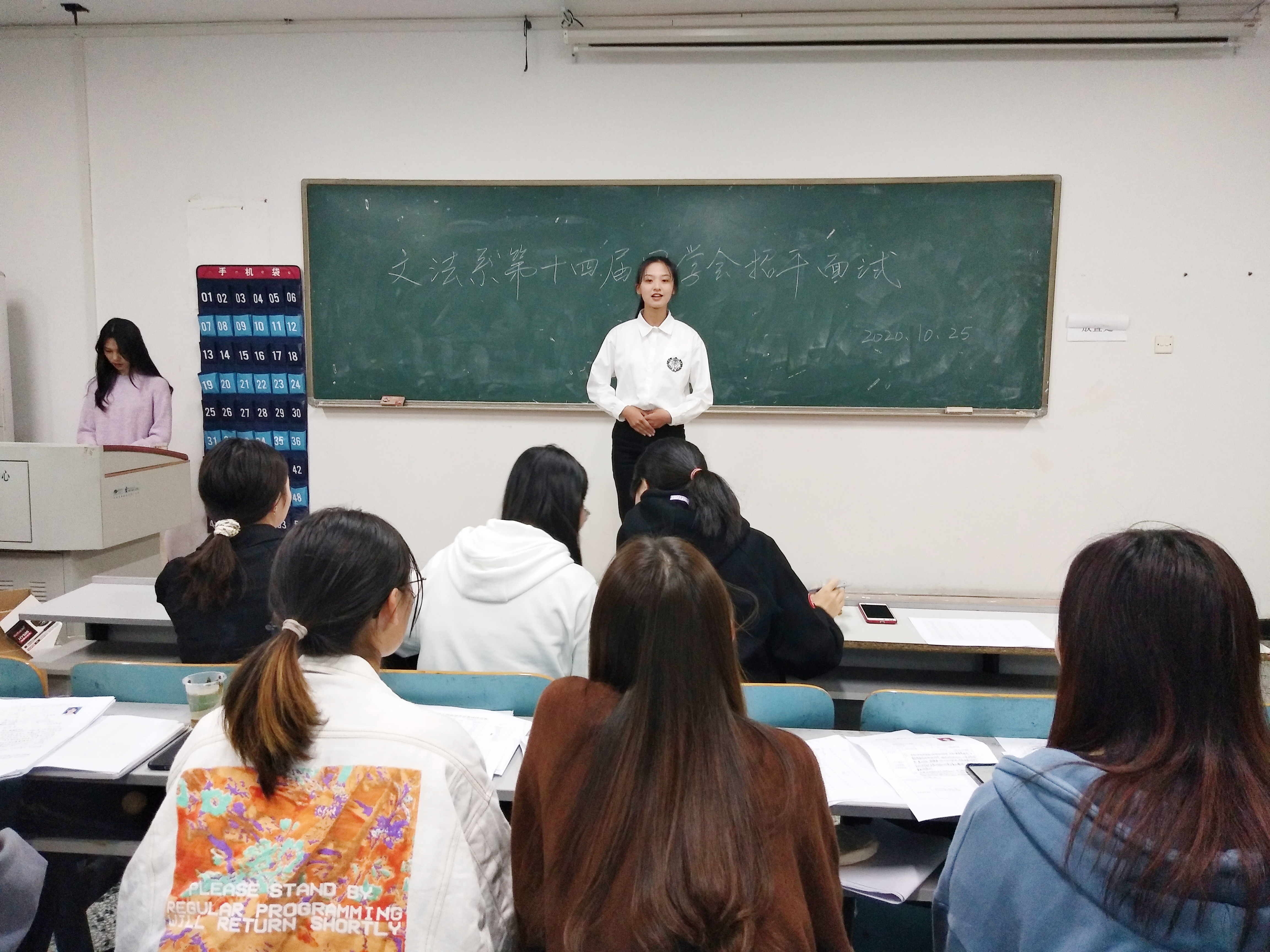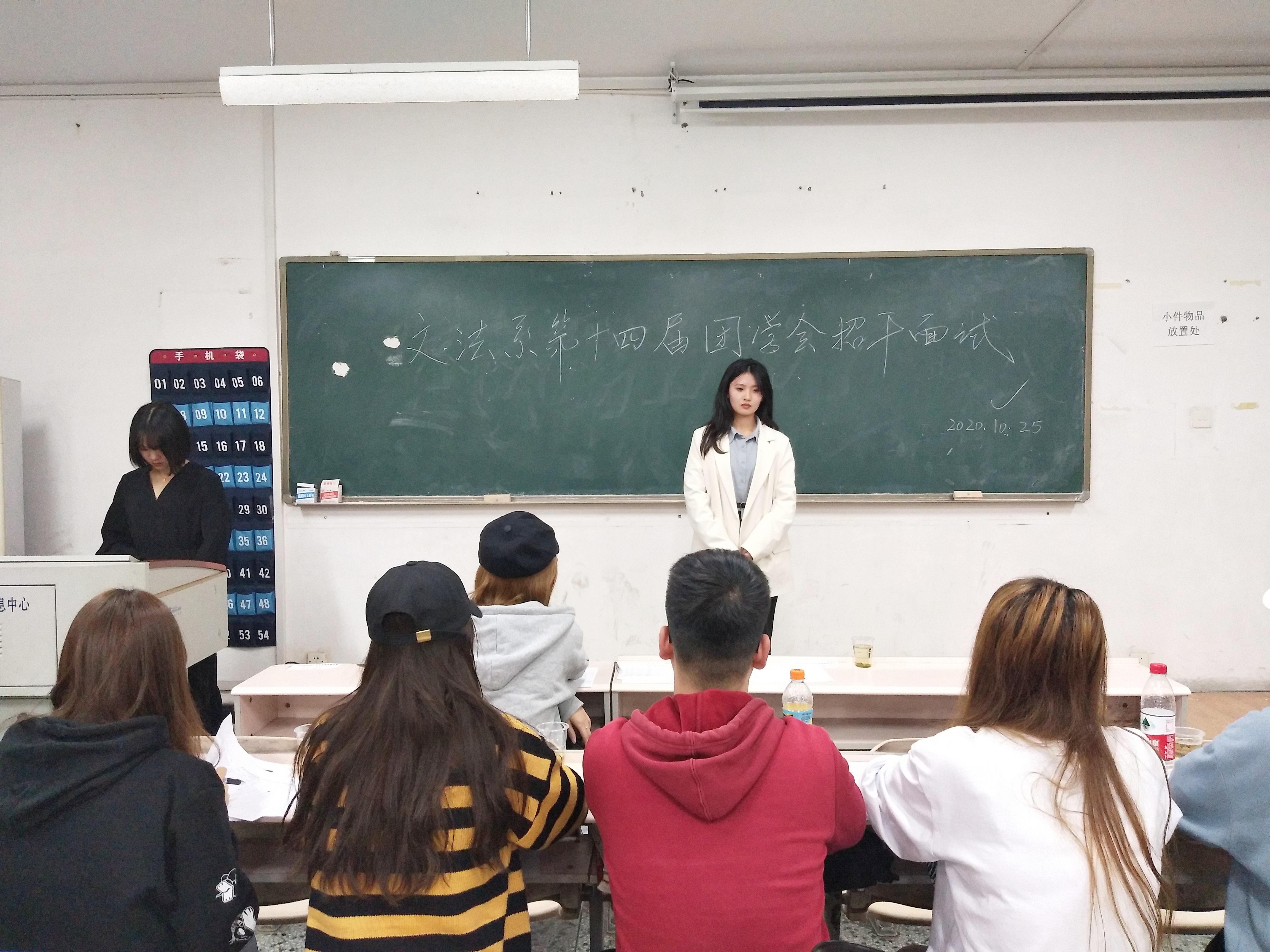 10月25日晚,我系在二号教学楼2201、2211和2301教室举行文法系第十四届团学会招干面试。系团总支书记欧阳群力随堂巡查,团学会主席团以及各部部长参加本次大会并担任评委。