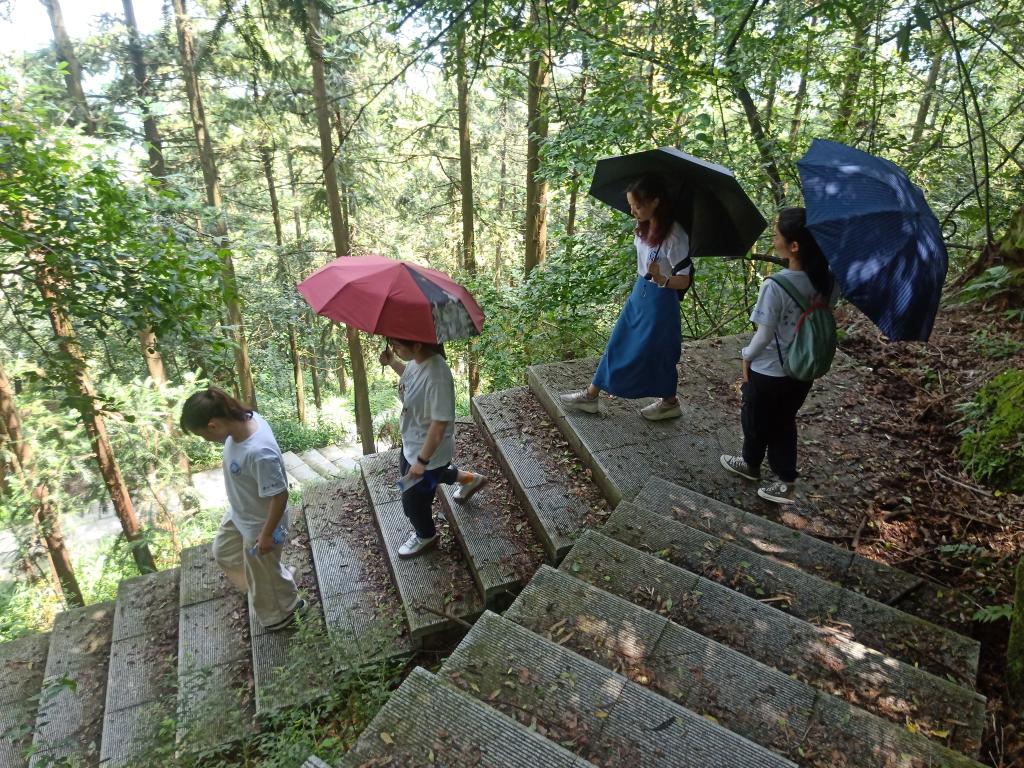 初心团队前往宁乡市流沙河镇罘罳峰,该地是毛泽东青年游学路线经过地。在上山调研的过程中,山路较陡,且天气十分炎热,在队员们体力已经接近极限的情况下,仍然坚持行走。在这样的情况下,初心团队成员回想当时毛泽东游学是如何的坚定。“大概是因为热爱的原因”。他爱知识,求取知识的路即使是要上蜀道,他也会毫不畏惧。成员们感悟到先辈对于学习的坚定和对于知识的渴望,队员吴依瑶在路上感慨道:“到现在去感受那条路线我都觉得很辛苦,更不用说在当时这条路线条件的艰苦,这也是值得我们学习的革命先辈们不畏艰苦,吃苦耐劳的精神。”