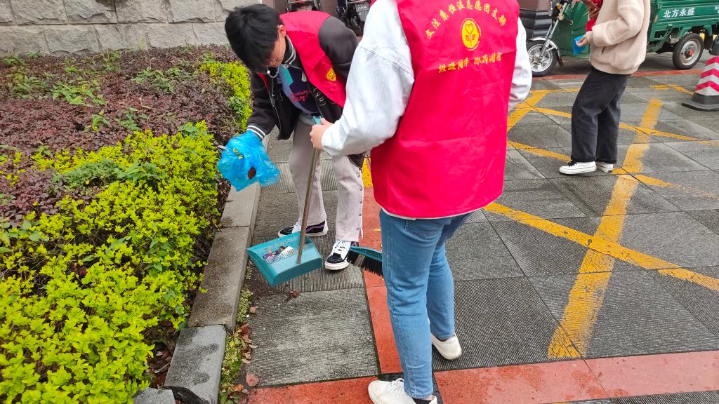 3月初的天气依旧清冷,天空飘起了小雨。清扫活动在东院综合楼前拉开了序幕。团学干部们身着红色志愿者服装,合理分工,拿起扫帚、铲子、剪子等劳动工具,对校园绿化带、主干道、教学楼前坪等场所,特别是对校园卫生死角、绿化带杂草等进行了认真清理,同时遇到乱扔烟头、乱扔纸屑、不按规定走斑马线等不文明现象进行了劝阻。“本次志愿活动让我受益匪浅,为美丽校园尽自己的一份力,我感到非常的自豪与骄傲,我是校园的一份子,有责任与义务维护好校园环境。”参与其中的曾嘉玉同学说道。经过团学志愿者们一个半小时的努力,校园卫生环境得到了进一步的改善,为校园的环境附加上一份新的“滤镜”。