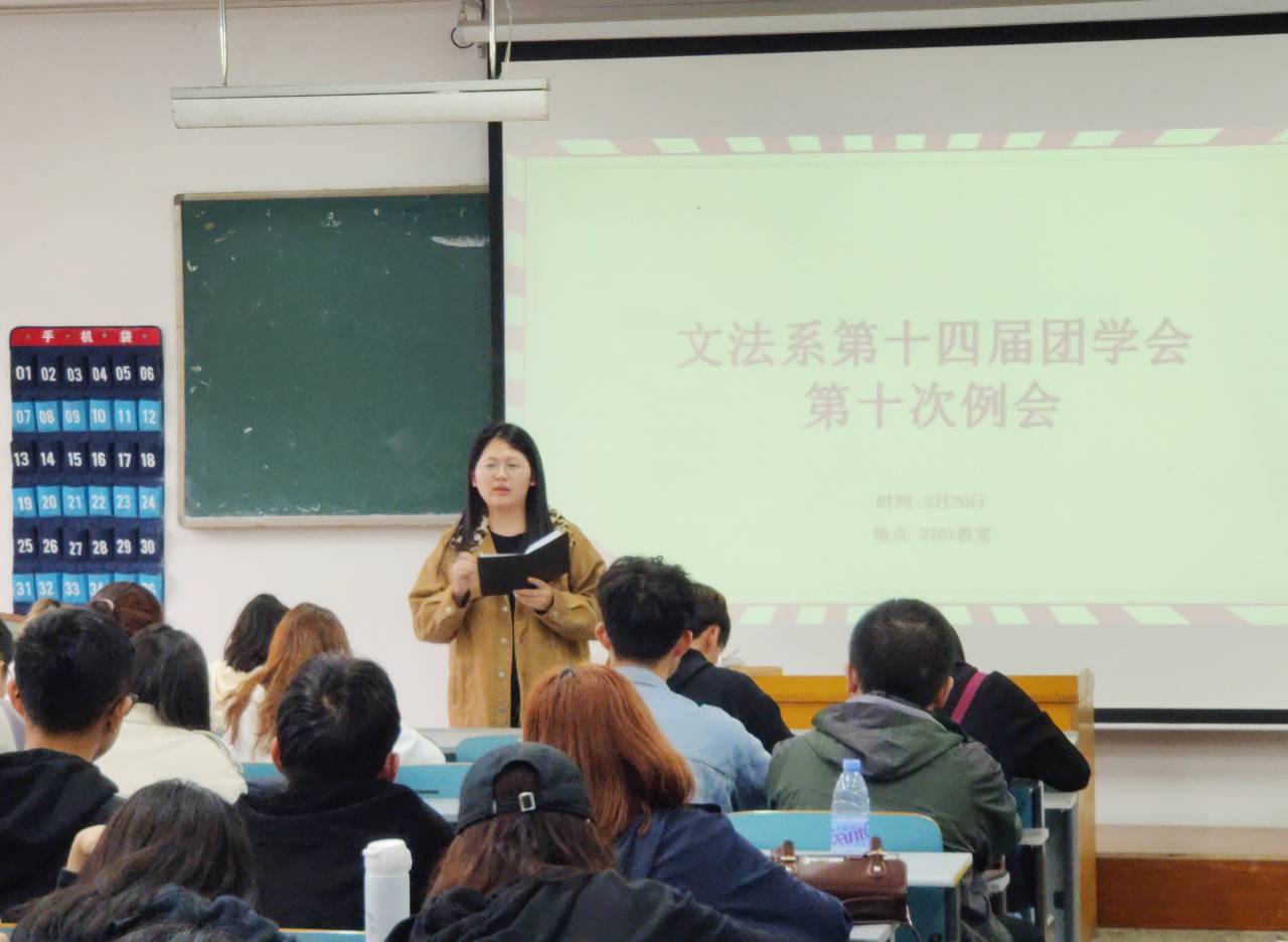 3月26日中午,我系在2号楼2101教室召开第十四届团学会第十次例会。团学会全体干部参会,系团总支书记欧阳群力与会。