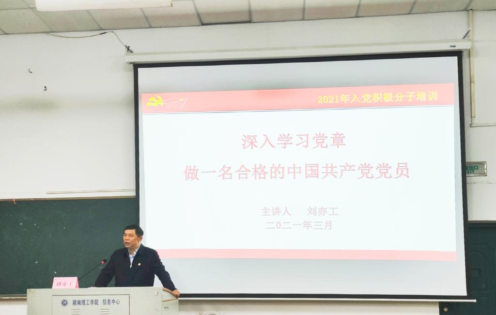 刘亦工作了题为《认真学习党章,做合格共产党员》的专题讲座。他以“在党言党、在党爱党、在党忧党、在党为党”为切入口,结合理论与实际,详细阐释了党章的基本内容以及做一名合格的共产党员应具备的基本素养。讲座过程中,他强调指出,构筑坚定的理想信念是共产党人的精神追求和共产党人安身立命的根本。随后,他从党的十九大修订的党章中的新特点、新内容入手,通过回顾抗美援朝的胜利和分析当前疫情防控的现况,强调共产党员要时刻保持先进性,身体力行党的路线与纲领。他希望同学们通过学习新党章打牢理论基础,坚定理想信念,树立社会主义文化自信,为中华民族的伟大复兴而不懈奋斗。