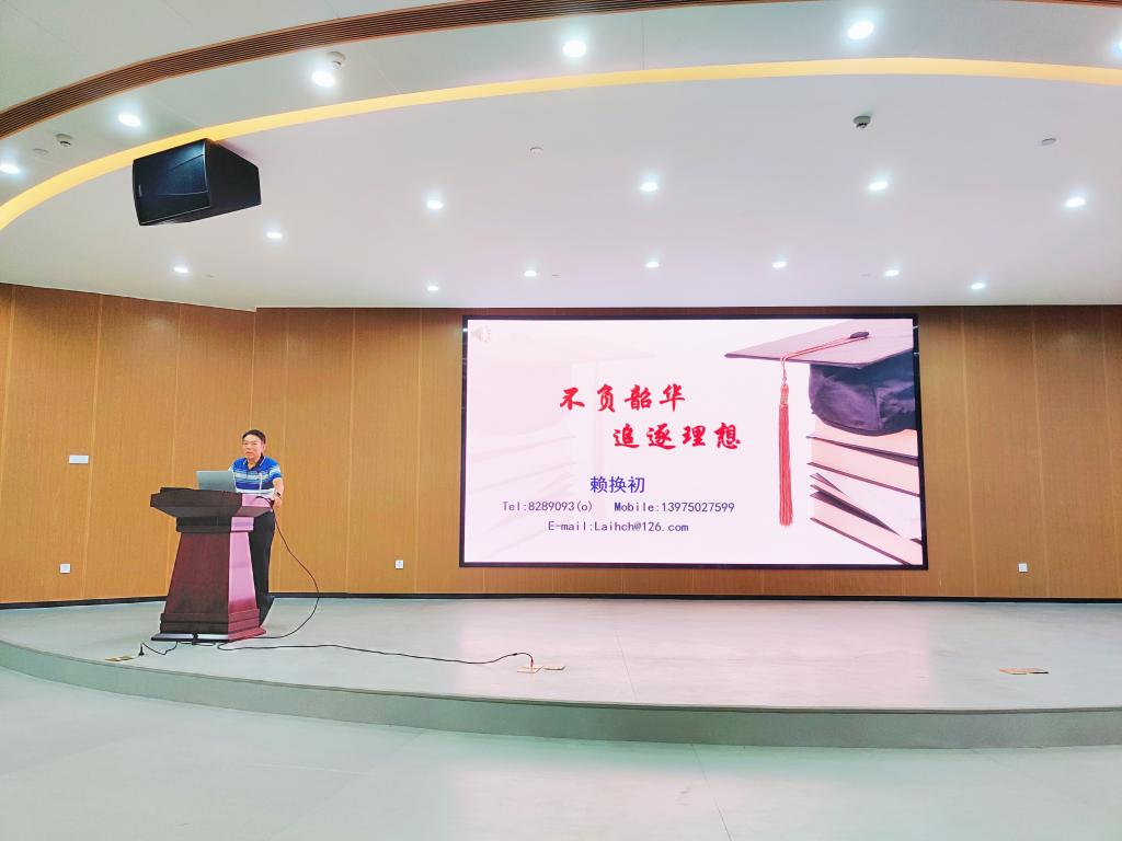 会议伊始,付亚子向21级新生详细地介绍了系部的领导老师。其后,赖换初为2021级新生讲授“信仰起航”入学教育第一课,他首先代表文法系对全体新生的到来表示热烈地祝贺和真诚地欢迎,随后他以“不负韶华、追逐理想”为主题,围绕“增强信念,练就本领”、“修身养性、务本成才”两方面展开具体阐述。他提出,同学们要立鸿鹄之志,树立远大的理想抱负和正确的人生目标,并在学习和生活中矢志不渝地践行。他鼓励同学们多读经典著作,提升思想觉悟,悟马列之道,铸智慧之剑,同时还希望同学们在大学四年里修身养性,养成自强不息、宽容大度、积极乐观的优良品质。赖主任的课例证丰富、妙趣横生,学生们听得津津有味,收获颇丰。