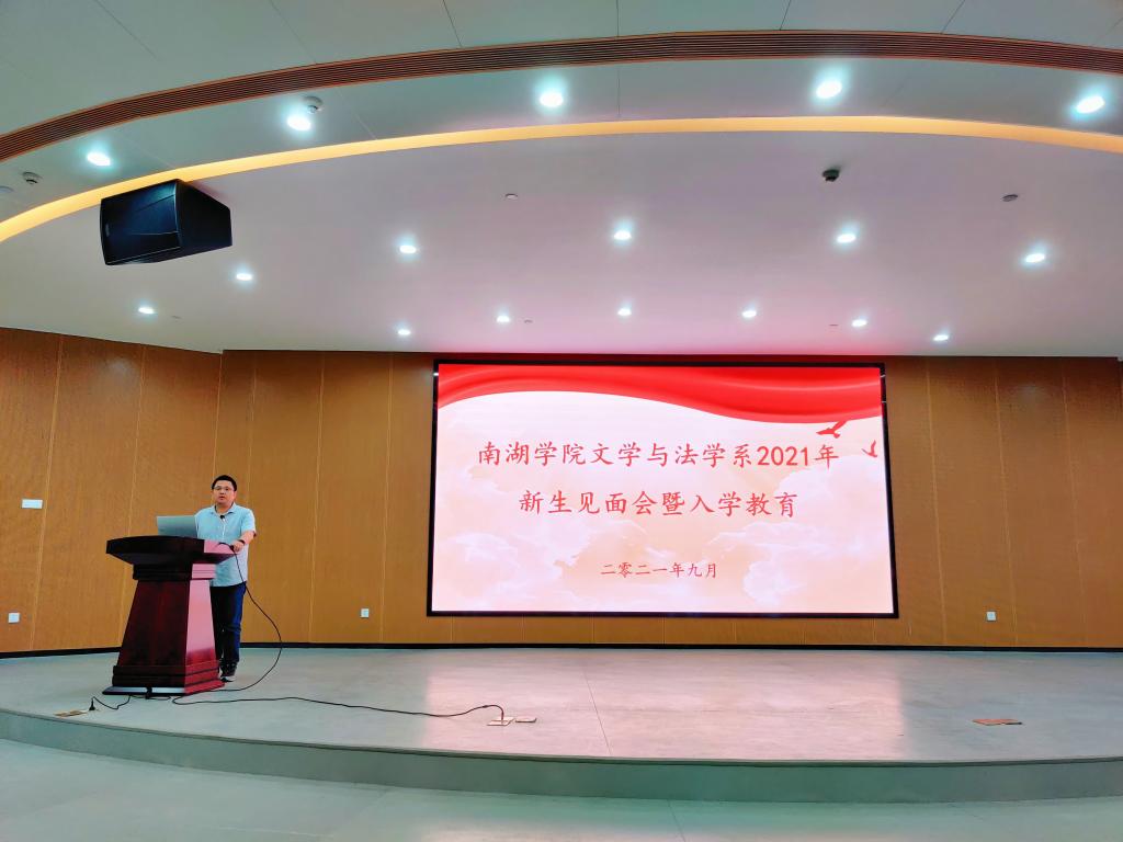 9月28日下午,文法系在南院17栋17118会议厅召开2021级新生见面会暨入学教育第一课。系主任赖换初,系党总支书记付亚子、系教务和学工线老师与会,新生助理班主任、部分团学干部和全体2021级新生参加本次大会。入学教育大会由付亚子主持。