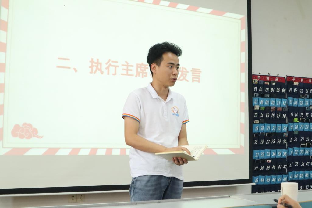 本次会议分新干事自我介绍、执行主席发言、执行团副发言三个议程。会议伊始,43名新干事依次上台作自我介绍。他们主要围绕兴趣爱好、个人特长等方面积极展现自己,呈现出朝气蓬勃的青春力量。随后,执行主席左康发言。他首先对新干事的到来表示热烈地欢迎和真诚地祝贺,接着,他就团学干部、干事成绩考核,办公室值班常规工作,军训期间各部门工作开展这三方面的问题进行详细阐述,对干部、干事的学习成绩,工作方法,工作态度提出了具体要求。最后,执行团副程子瑞作补充发言。他通过讲述发生在身边的真实诈骗案例警示教育同学们提高防范意识,谨防网络诈骗。