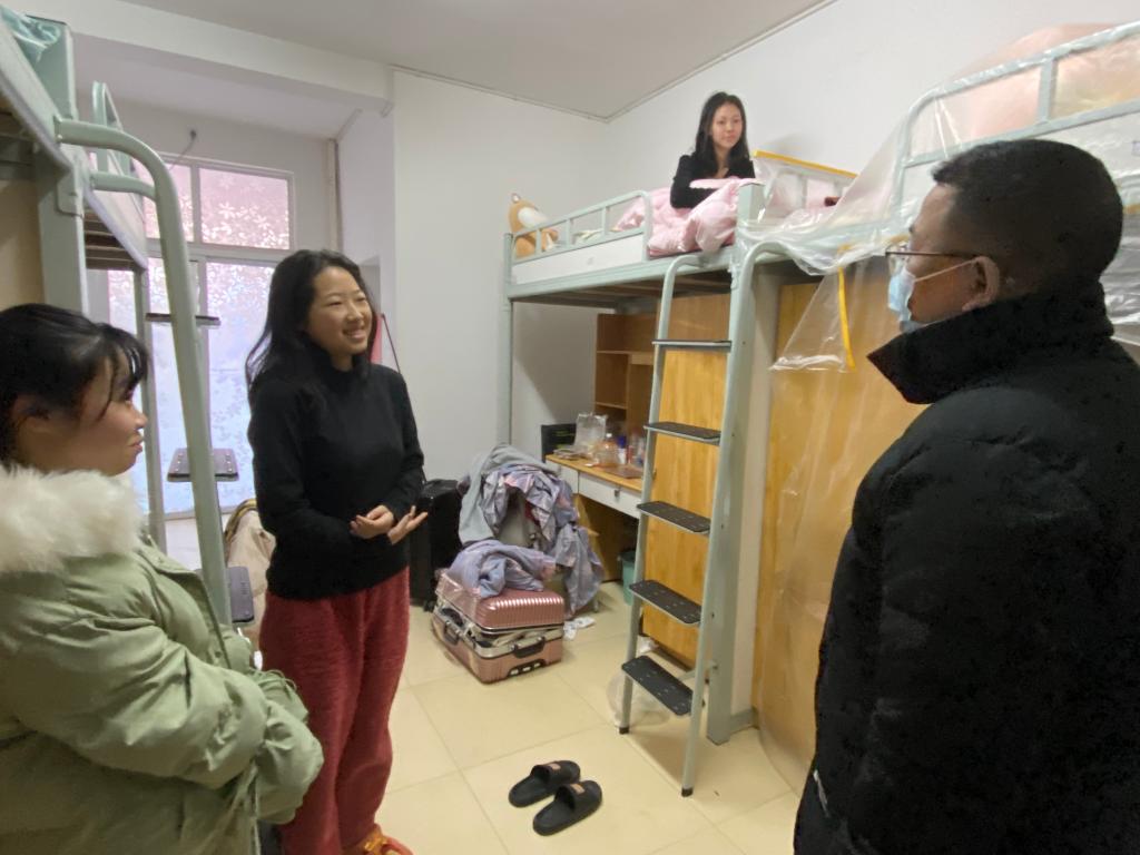 2月20号晚,文法系党总支书记付亚子带领文法系各辅导员深入到学生寝室看望新学期返校学生,给学生们带去温暖与关怀。