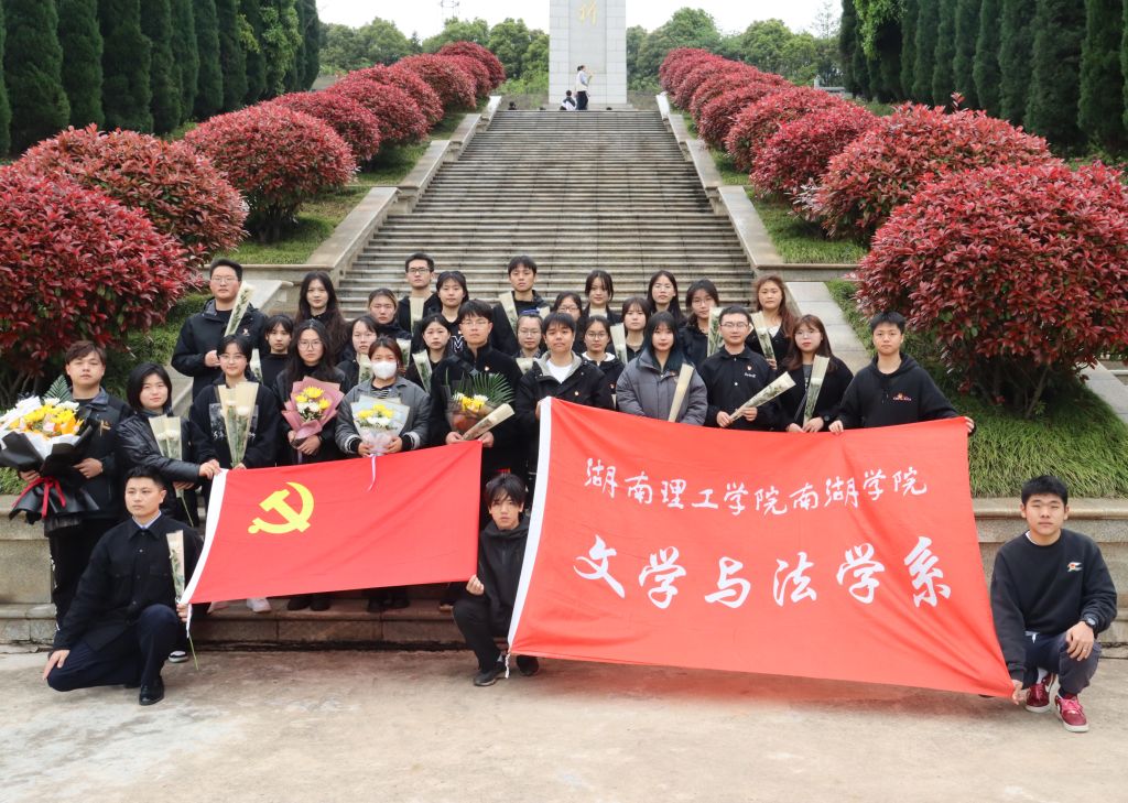为深刻了解岳阳市红色革命文化,深切缅怀革命先烈,积极弘扬英烈精神,厚植爱国主义情怀。春风诉缅怀,清明寄哀思。4月5日上午,文法系30名党员及团学青年代表走进岳阳市烈士陵园开展“缅怀革命英烈 赓续红色血脉”清明祭奠英烈主题党日活动暨教育实践活动,以实际行动缅怀革命先烈,表达深切悼念和无限敬仰之情。本次活动由文法系团总支书记郭萌主持。