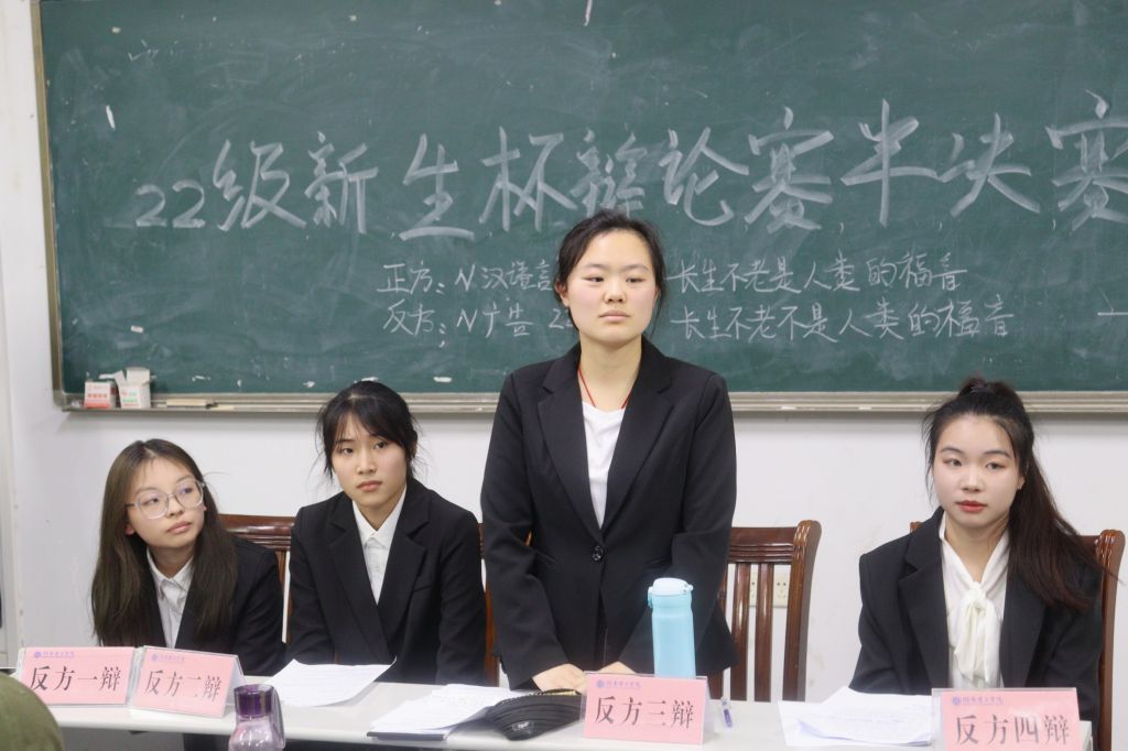 为丰富系部学生校园文化生活。4月9日晚,文法系于2号楼2301教室举行22级“新生杯”辩论赛半决赛下半场。本场比赛邀请到南湖学院辩论队王宇晨等人担任评委,比赛的正反双方为22级广告一班和汉语言一班,部分22级学生观看此次比赛。