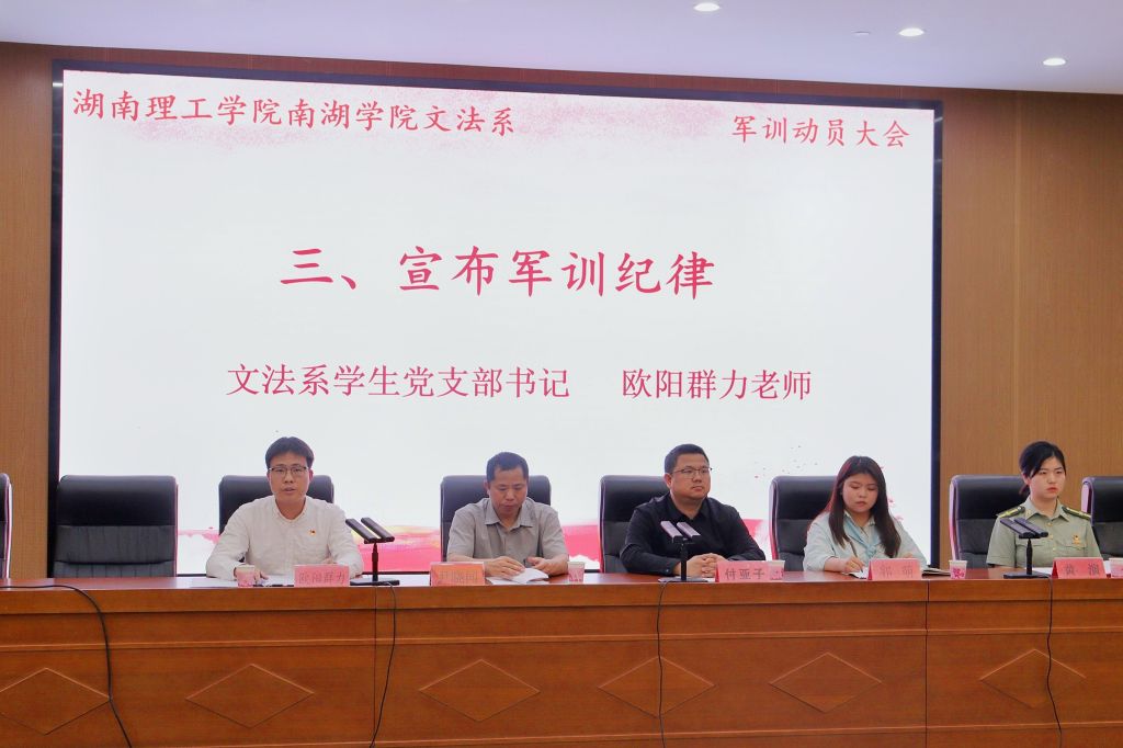 为激发我系学生爱国热情,增强学生国防观念和国家安全意识,培养学生艰苦奋斗的优良作风,掌握基本的军事知识和技能。4月14日晚,文法系于17栋118会议厅召开2022级军训动员大会。文法系主任尹晓闻、党总支书记付亚子、学生党支部书记欧阳群力、22级辅导员郭萌、带训教官、助理班主任与会,22级全体参训学生参加。动员大会由程锦玉主持。