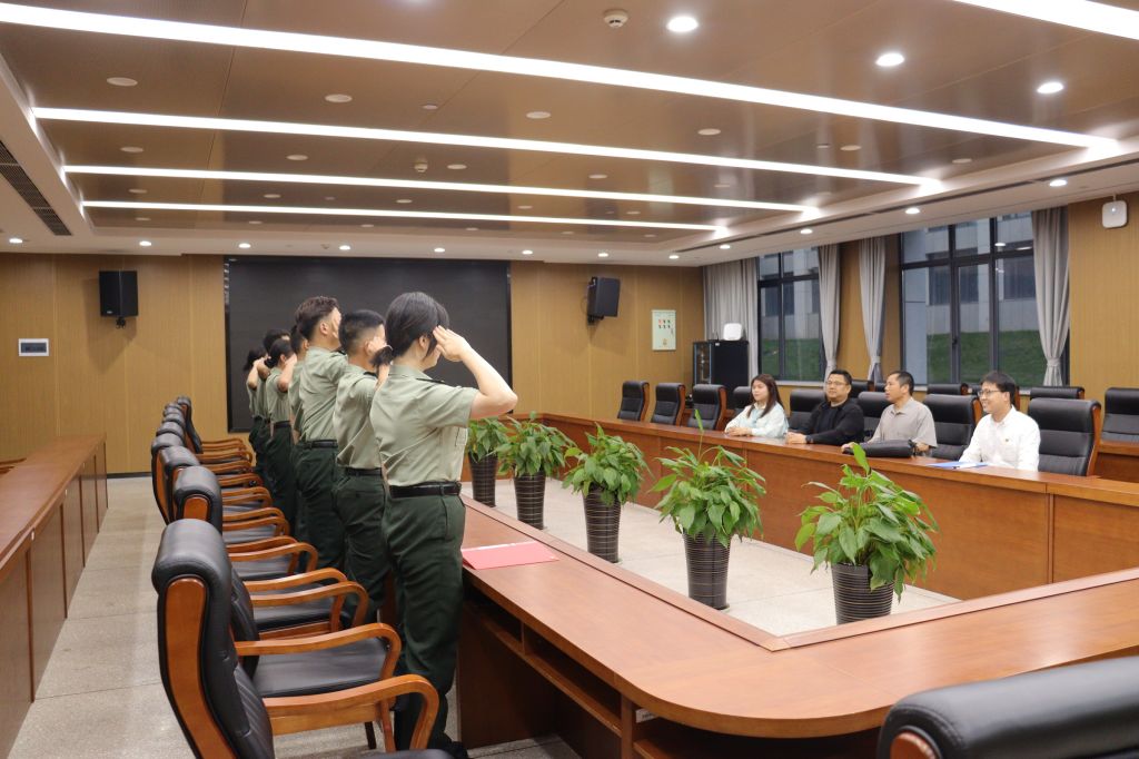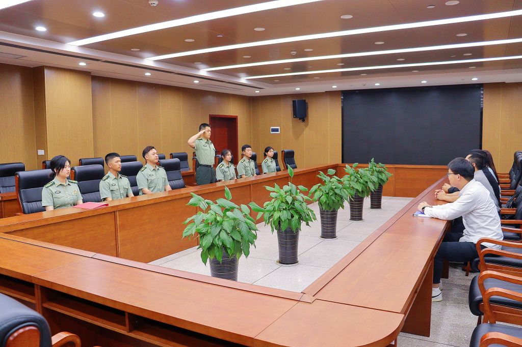 会前,尹晓闻带领系部老师与教官见面交流。各教官依次从系别、班级和所在连队等方面进行了简单的自我介绍。紧接着尹晓闻肯定了教官所展现出来的精神风貌并代表系部对各位教官表示欢迎。他在充分肯定训练成效的同时,指出要把学生身体健康和生命安全放在第一位,希望教官们根据条例对学生从严管理、严格施训;关心关爱学生,科学施训,对身体状况不适宜参训的学生可采取“观训”等方式。最后,付亚子作补充发言。他强调,系部将高度重视学生军训工作,为军训提供全面的后勤工作,确保军训工作的顺利开展。