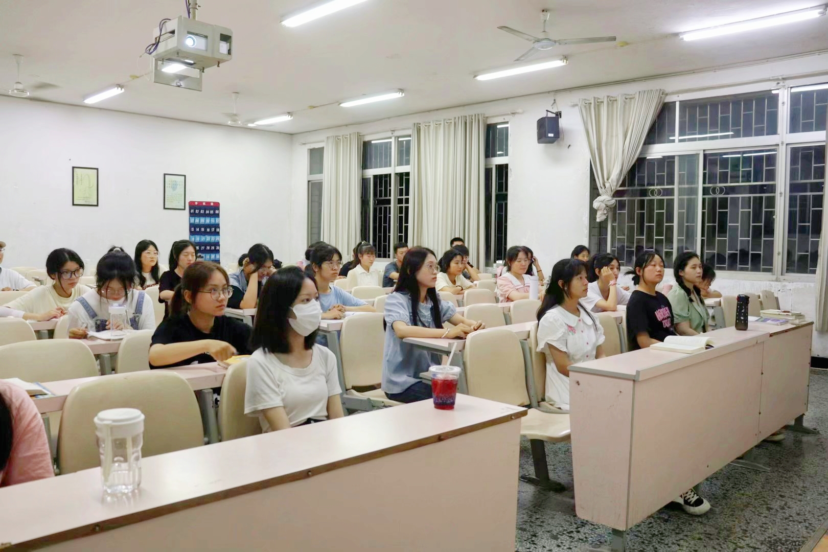 (学生观看讲座现场)