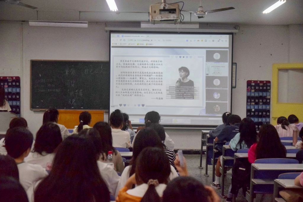 (学生在教室观看讲座)