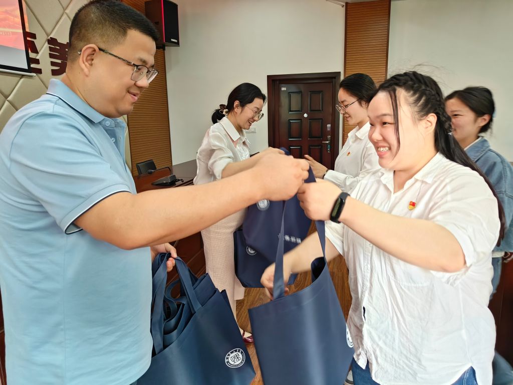 (支部老师为毕业生党员发放信仰礼包)