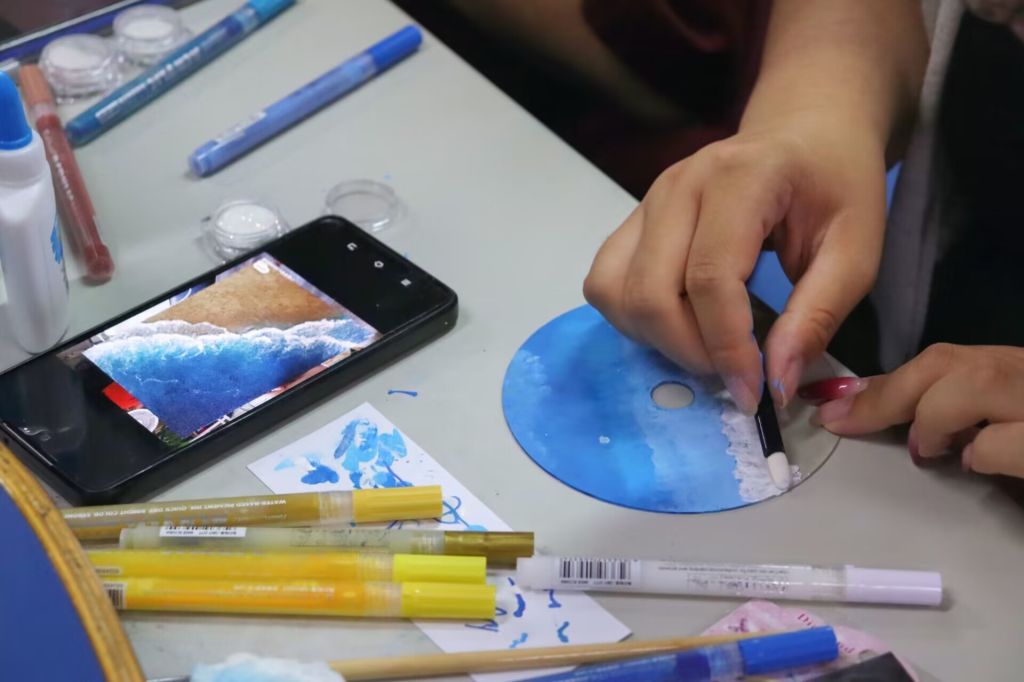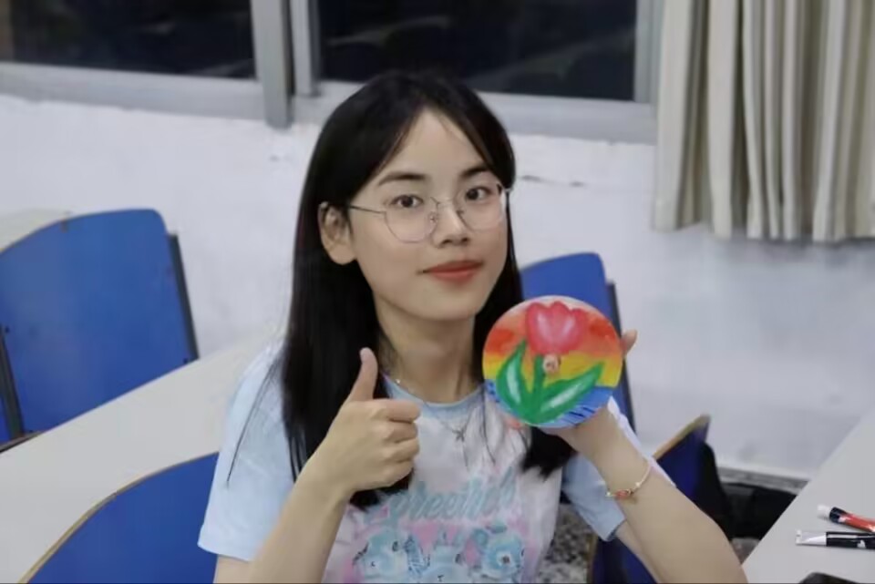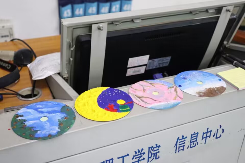 本次比赛以光盘为载体,涂鸦、拼贴为形式,设有一、二、三等奖和优秀奖四个奖项,以“笔墨丹青绘我华夏”、“笔底春风畅我所想”、“妙笔生辉着我未来”三个主题进行现场创作。比赛伊始,参赛选手们携带比赛创作所需工具,依次进入指定教室领取空白光盘。比赛过程中,参赛选手们紧扣活动主题,通过对线条的勾勒和色彩的填充,展现了同学们丰富的创新力和想象力,描绘出同学们对祖国山河建设的美好畅想、世间万物的奇思妙想以及个人未来前途的无限展望,表达了对祖国的热爱和对梦想的不懈追求。赛后,22级汉语言四班唐薇有感而发:“在比赛时,我能够通过涂鸦表达内心情感,从中感受涂鸦的乐趣,也希望自己在逐梦路上能如今晚的涂鸦比赛一样,在创新中不断探索与成长。”