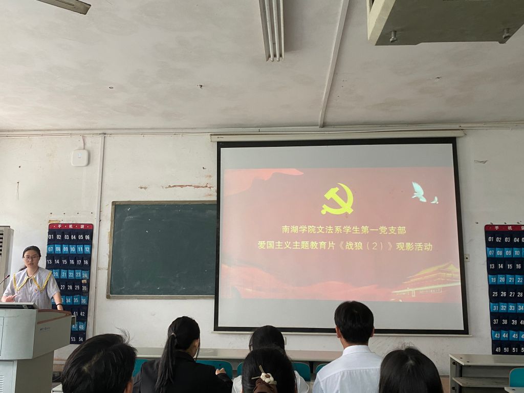 为了培养全体党员的爱国主义精神,培育和践行社会主义核心价值观,激发民族自信心和自豪感。5月26日中午,文法系学生第一党支部于2号教学楼2110教室组织全体党员观看爱国主义主题教育片《战狼(2)》,支部共39名党员参与观影活动。