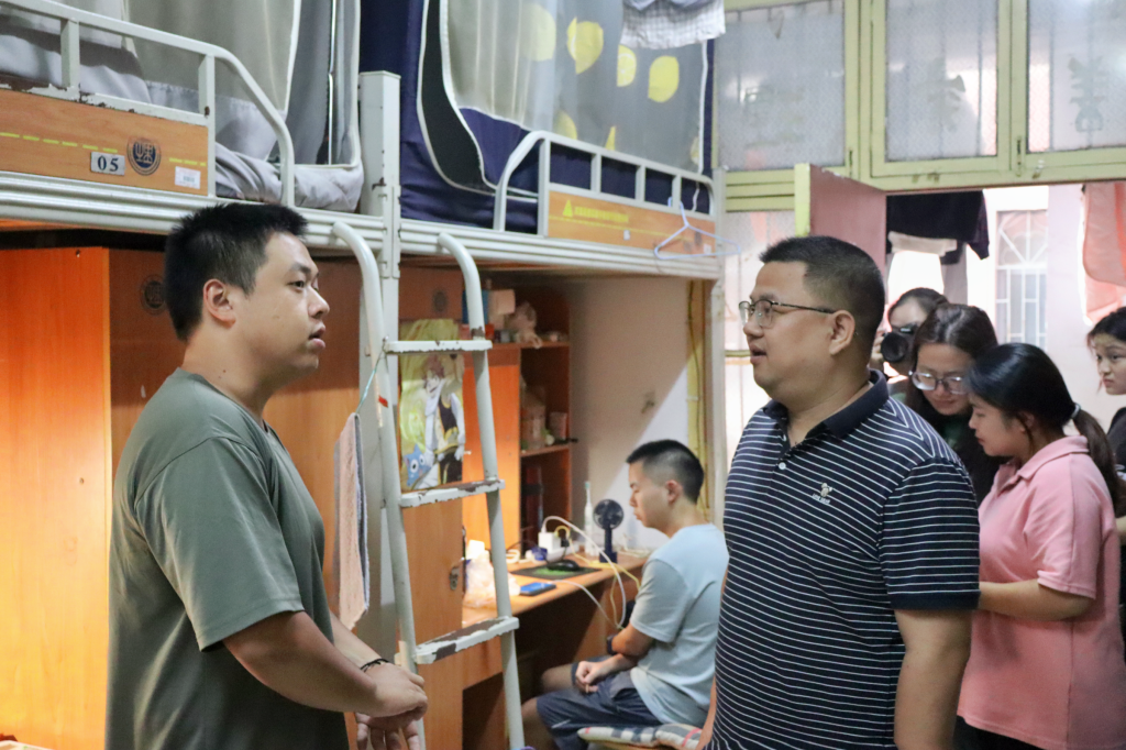新学期、新作风、新姿态。为全面了解学生到校情况及开学状态,维护校园安全稳定、文明和谐的育人环境,9月3日下午,系党总支书记付亚子带领文法系全体辅导员及系团学会部分学生干部深入学生宿舍看望刚返校学生,了解同学们学习、生活、思想各方面的情况。