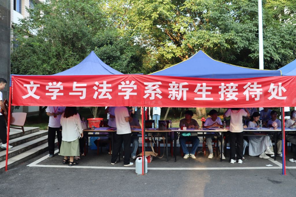 9月9日起,文法系开启为期两天的“迎新模式”,迎接2023级274名新生入校报到,正式汇入文法系“大家庭”。文法系主任尹晓闻、党总支书记付亚子、新生辅导员黄琴老师、欧阳群力、郭萌等老师以及23级各班班主任前往迎新现场,了解新生入校情况,欢迎新同学和家长们的到来,走访慰问辛勤忙碌在志愿服务岗位上的师生们。