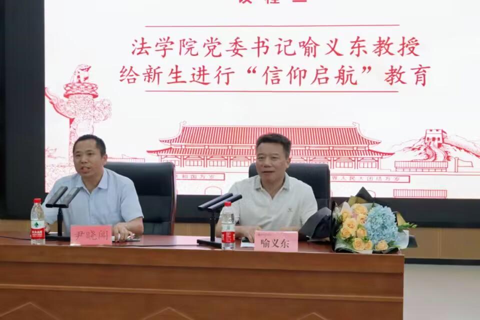 为加强新生思想教育,引导新生尽快完成角色转化,9月10日下午,文法系2023级新生见面会暨入学教育第一课于南院17栋17118会议厅召开。文法系主任尹晓闻、党总支书记付亚子、学生党支部书记欧阳群力、团总支书记郭萌、教学秘书陈花、李仕豪、新生辅导员黄琴、23级汉语言一班班主任张超人及23级全体助班与会,全体新生参会。会议特别邀请了法学院党委书记喻义东教授作入学教育讲话。
