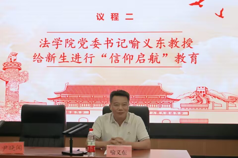 会议伊始,付亚子对全体新生的到来表示了热烈的欢迎,并祝愿每个人在未来的学习生活中学有所成、学有所获。同时,他鼓励同学们能够鼓足干劲,力争上游,不负时代,争做有“骨气、志气、底气”的新时代青年。随后,喻义东教授进行“信仰启航”教育讲话,他围绕“新时代青年成长成才的方向指引和航向”这一主题,以“聊”的方式,从“法”“道”“术”三个方面,与同学们共同讨论了应该如何度过大学生活。他指出,“法”即根本方法,同学们要坚定中国立场,树立崇高的理想信念,立大志、明大德、成大才、担大用,找准人生航向,把握人生方向;“道”即道德修养,同学们需找到自己的“道”,塑造正确的三观,以认真、务实、乐观、进取的态度面对人生,扬长避短发展自己,扣好人生的第一颗扣子;谈及“术”时,他表明学生们要有“苦行僧”的精神,珍惜机会,做好规划,争分夺秒抓时间,利用资源搞学习,全面提升自我能力。