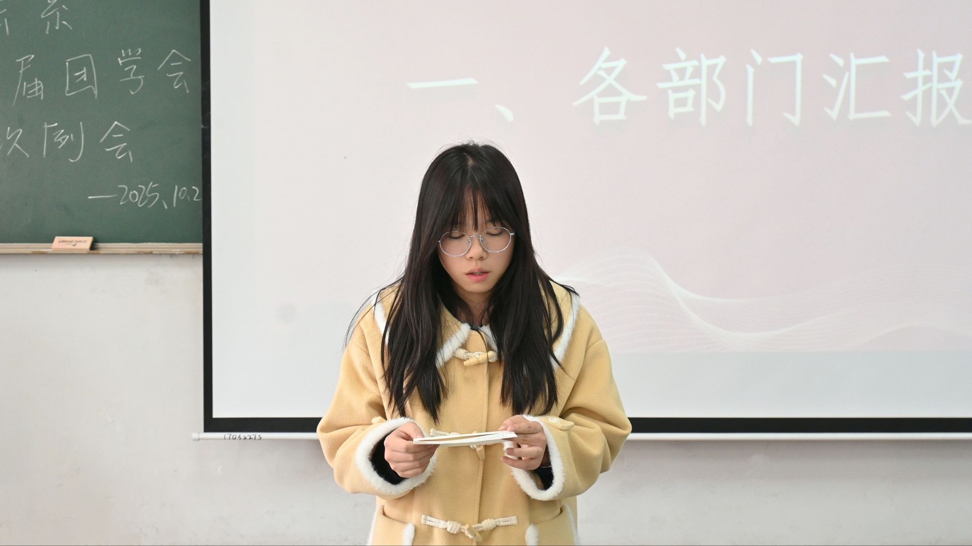 会议伊始,各部门代表依次对近期的工作进行总结与汇报,指出近期部门工作的不足之处并提出改进方案,同时制定下一阶段工作计划。随后,执行团副杨嘉伟发言。他表示,全体团学干部要进一步增强责任意识与担当精神,恪尽职守、锐意进取,切实改进工作中存在的懈怠现象,保证各项任务落到实处、取得实效。杨嘉伟重点强调,当前团学工作正处在关键时期,校运动会筹备进入倒计时,各部门要牢固树立全局观念,加强沟通协作,全力以赴做好运动会的组织与保障工作;同时,他就宣传部近期改革作出说明,明确“南湖文法”微信公众号已正式注销,今后文法系重要信息及通知发布的唯一平台为文法系官网,要求全体成员及时关注并适应这一变化,确保信息传递的准确性与权威性。
