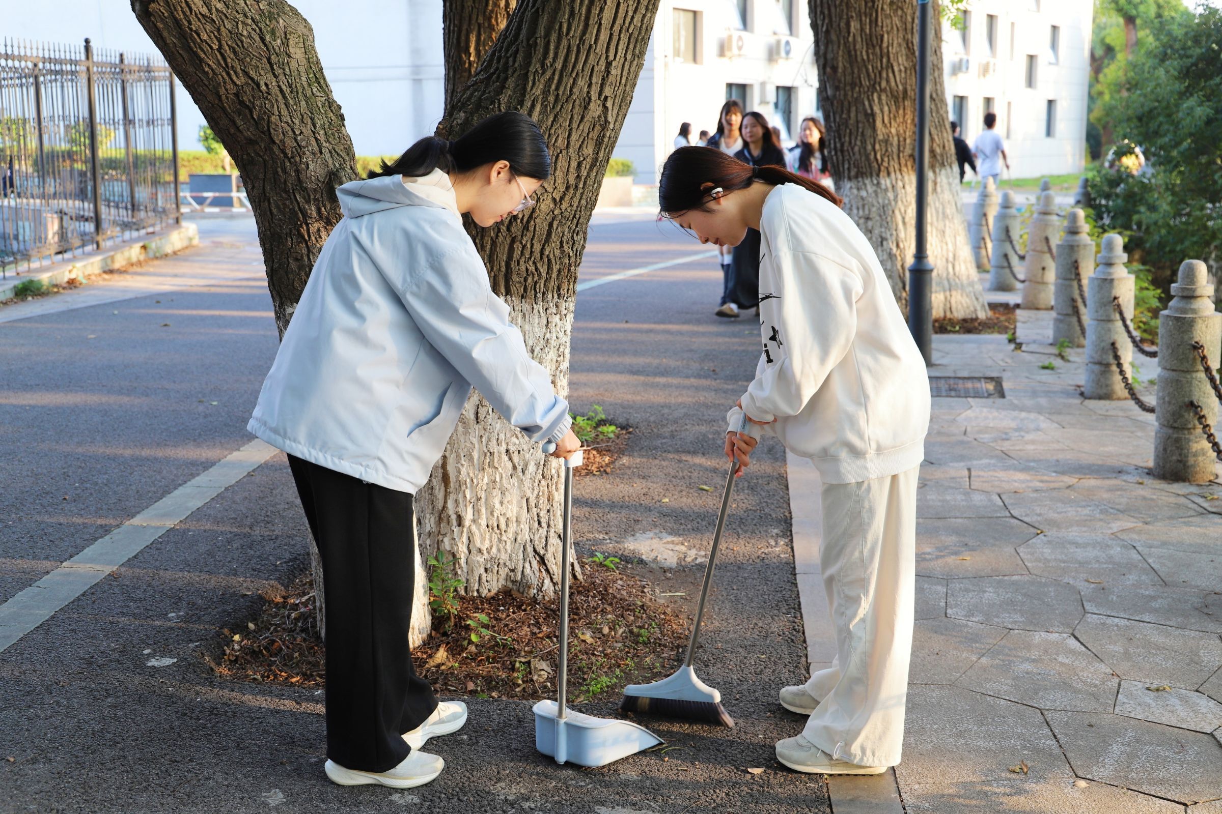 活动前,志愿者们先于二号教学楼大厅集合,由活动负责人给各组分发打扫工具并分配任务。下午16时,清扫活动正式开始,各组按划定区域展开行动。志愿者们手持劳动工具,细致清理落叶堆积的角落,俯身拾取草丛间的塑料包装、烟头等杂物,并对废弃瓶罐进行专项回收。秋风吹拂,涟漪轻漾,南湖绿化带旁跃动着的“红马甲”,成为校园中一抹亮丽的风景,传递着新时代的志愿服务精神。活动过程中,同学们默契协作,高效有序,充分展现了青年学子务实肯干、团结互助的精神风貌。