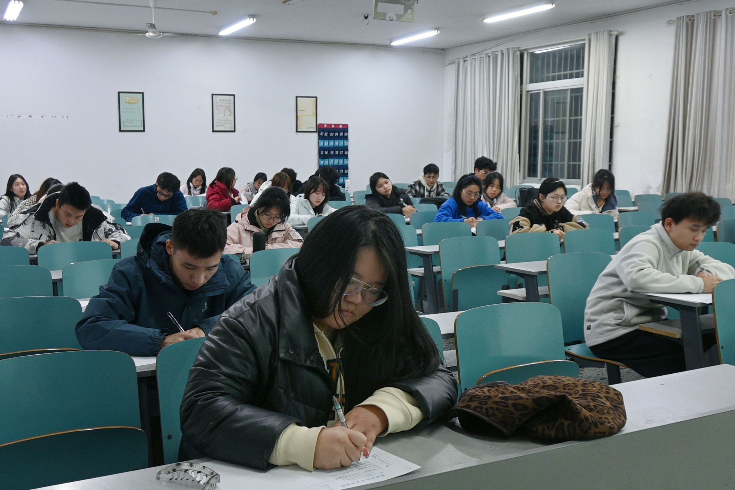 11月27日晚,南湖学院2025年申论写作大赛在2号教学楼2201、2205教室同步举行。本次比赛由院教务办主办,文法系承办,共有来自五个系的76名学生参赛。比赛由教学秘书李仕豪与系团学会干部监考。