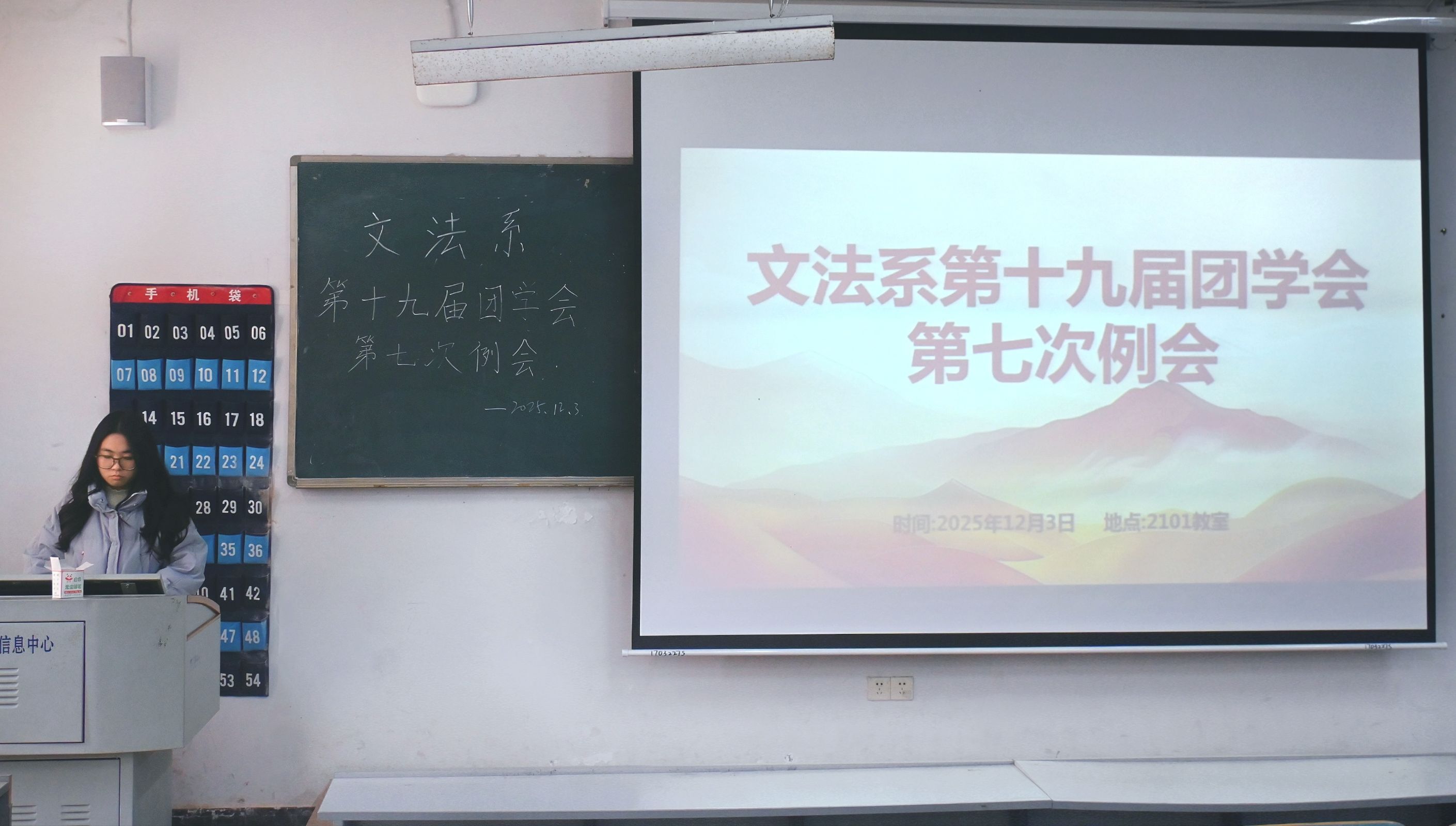 为及时梳理团学工作动态、补齐工作短板、锚定下阶段工作重点,12月3日中午,文法系于2号教学楼2101教室召开第十九届团学会第七次例会,全体团学干部参会。